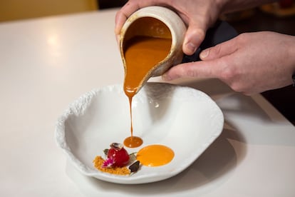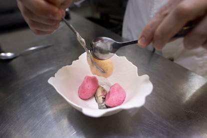 Había nacido, en efecto, uno de los cocineros valencianos revelación del momento. Todo el mundo lo felicitaba por la estrella, pero de lo que él estaba orgulloso es de la etiqueta verde. En la lista de los Top 10 españoles de la We’re Smart 2025, con el restaurante Xavier Pellicer (Barcelona) en cabeza, había cuatro establecimientos valencianos: Ricard Camarena, La Salita, Fierro (los tres en la ciudad de Valencia) y Rubén Miralles. No en vano, el menú para veganos de este último, bautizado como Amarant por el amaranto, un vegetal similar a la quinoa, pero con mucha más carga proteínica, era unánimemente reconocido.
