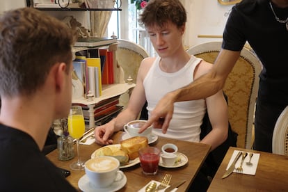 “No busco que la gente llegue, haga la foto y se vaya. Quiero que pasen un buen momento y mucha gente me lo dice: ‘Me siento como en casa de mi abuela’. Ese es el comentario que quiero”, dice el asturiano. La carta de este salón de té, abierto todos los días de diez de la mañana a siete de la tarde, ofrece sobre todo fórmulas de brunch, desayunos y almuerzos ligeros, con sándwiches y brioches salados, y otros placeres dulces para quienes busquen merendar a cualquier hora con un buen té. Lo sirven en teteras y tazas de porcelana, una presentación un tanto pasada de moda que destaca entre la masa de cafés de especialidad con decoración minimalista y bancos corridos que inundan la capital francesa (y las de otras ciudades del mundo).