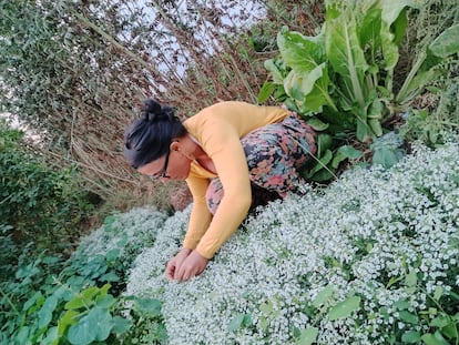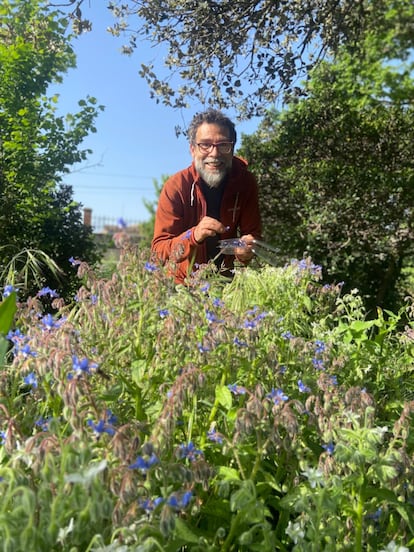 Díez ejercía de psicólogo cuando hace diez años decidió dejarlo todo para empezar un pequeño huerto. Ahora cada viernes le pasa a sus clientes un “catálogo” de lo que hay en el campo. “Recolectamos todo bajo pedido y siendo muy conscientes del impacto que generamos. No es solo saber que las flores de la borraja se comen, sino que hay que recogerlas una vez han echado semilla para que la planta pueda finalizar su ciclo reproductivo”, cuenta.