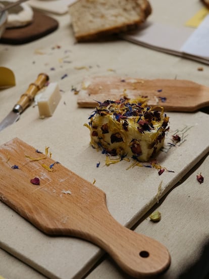 En su opinión, el éxito guarda relación con el misterio que envuelve a la mantequilla, una gran desconocida. “Mucha gente ni siquiera sabe que la nata, su materia prima, se extrae de la leche”, recalca. “Hacerla es más apetecible y sorprendente que el queso”, asegura Jorge, que confirma un “retorno a la cocina de siempre” desde la pandemia. Al principio, los talleres eran espontáneos, pero desde hace tres años los veranos son “una barbaridad” y ahora todas las semanas celebran alguno. Uno tras otro, se llenan y cuestan 20 euros.