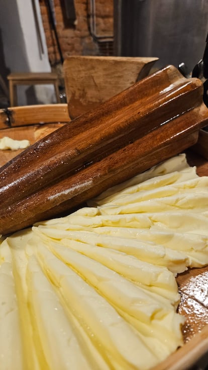 Los gallegos Airas Moniz, recientemente premiados con el Mejor Queso de España 2026 con su azul Savel, y cuya mantequilla Chantada levanta pasiones, han visto como la demanda de las visitas para conocer la elaboración de sus productos es cada vez más elevada. “La grasa es necesaria”, destacan. En el futuro, a ellos también les encantaría organizar experiencias para grupos reducidos. Su mantequilla, que a tantos devuelve a los desayunos de la aldea décadas atrás, al calor de la cocina de leña y la leche recién ordeñada, brilla gracias a la materia prima de las vacas de raza Jersey criadas en Galicia, cuya nata se deja acidificar durante 24 horas por fermentación microbiana. “Es un procesado mínimo, como el del queso artesanal”, reponen. “No tiene nada que ver con los ultraprocesados”.