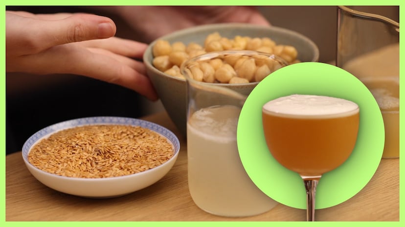 El mucílago de lino también ha ganado popularidad como sustituto de la clara de huevo. Se trata de una sustancia viscosa que se extrae de las semillas de lino cuando se mezclan con agua. Contiene polisacáridos como la arabinoxilana y la mucina, que son responsables de sus propiedades espesantes y emulsificantes. Y puede aportar ligeras notas a nuez, lo cual puede ser un toque interesante para la elaboración de ciertos cócteles. Además de su capacidad para crear una espuma espesa y cremosa, el mucílago de lino es una fuente rica en fibra soluble y ácido alfa-linolénico (ALA), un tipo de omega-3 con numerosos beneficios para la salud.