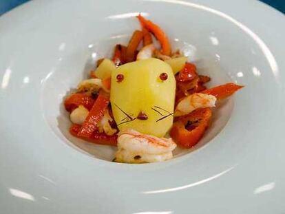 Me río, pero me aburre, porque hace ya tiempo que la cocina que se hace allí dejó de emocionarme. No consigo recordar ningún plato de esta tercera temporada que haya dejado a nadie con la boca abierta, solo composiciones que sirven para salir del paso, elaboradas bajo una presión tremenda. Deprisa, deprisa. "Corre corre corre que te van a echar el guante", deberían cantar los miembros del jurado al abrir cada prueba.