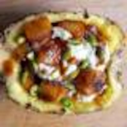 Esta ensalada reúne cierta ascendencia peruana con un claro tropicalismo sandunguero, porque se inspira en la técnica y los aderezos del cebiche.