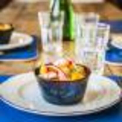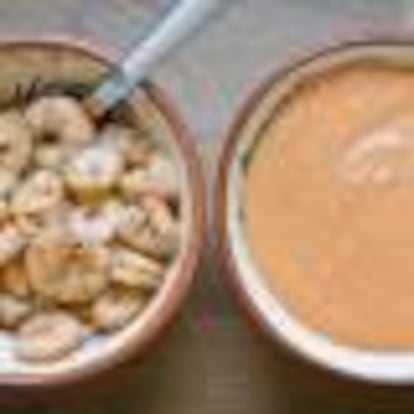 GAZPACHO DE MANGO CON GAMBAS PICANTES