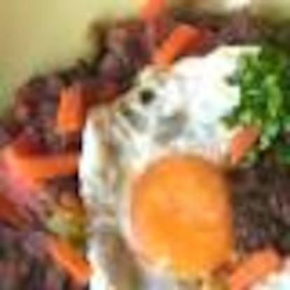 FRIJOLES REFRITOS CON HUEVO Y ZANAHORIAS ESCABECHADAS