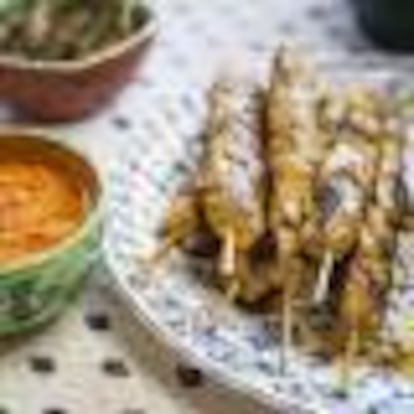 PINCHOS DE POLLO CON SALSA DE TOMATE Y FRUTOS SECOS