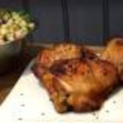 Lacamos unos contramuslos jugosos con miel, salsa de chile y soja, les dejamos la piel bien crujiente y lo refrescamos con una salsa tailandesa.