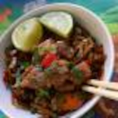 Es un estofado de carne de toda la vida pasado por el filtro local asiático, con tamarindo, salsa de soja, jengibre y semillas de cilantro.