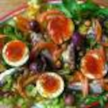 Una ensalada muy completa: legumbres, pescado, huevos y hojas verdes. Si sabes abrir un bote de garbanzos y una lata de sardinas, podrás hacerla.