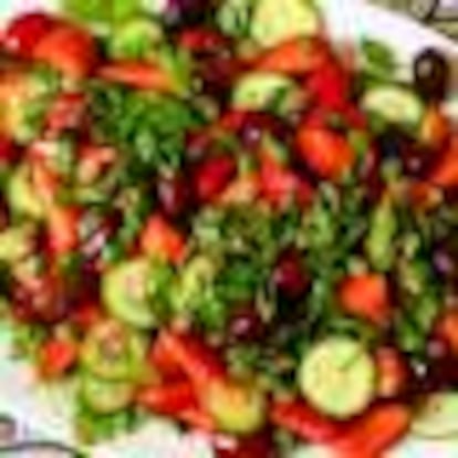 Las frutas pueden ser más que un postre. Las fresas y cerezas van a la perfección con unos buenos tomates y una vinagreta que las realce.