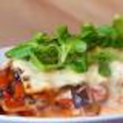 La caponata es un entrante italiano pero también puede servir como relleno en diferentes platos. Esta lasaña es uno de ellos.