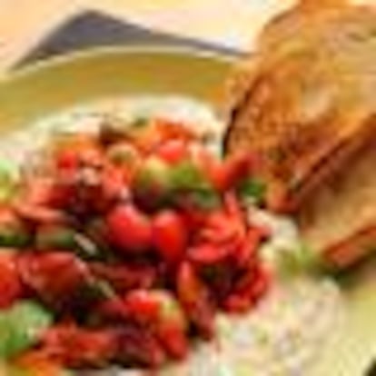 UNTABLE DE RICOTTA CON ENSALADA DE TOMATES Y ACEITUNAS