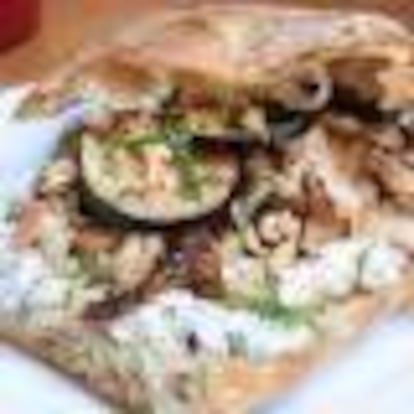 Si el pollo asado ya es glorioso de por sí, imagina combinarlo con higos, labneh, cebolla roja, menta y frutos secos. Y todo eso, mételo entre pan y pan. Sin palabras.