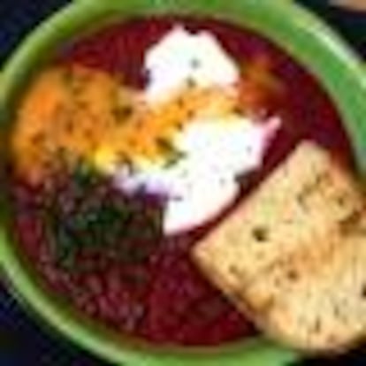 CREMA DE REMOLACHA Y AJO ASADO CON HUEVO