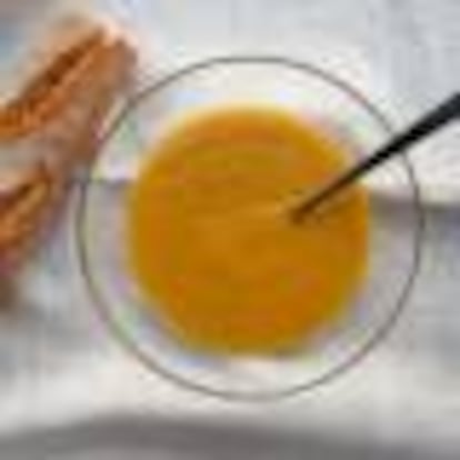 Caramelizar las manzanas con miel y mantequilla es clave para que una simplona crema de zanahoria pase a ser de escándalo.