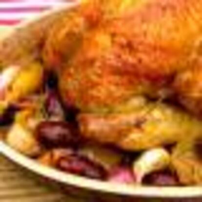 POLLO ASADO CON DÁTILES, ALMENDRAS Y LIMÓN CONFITADO