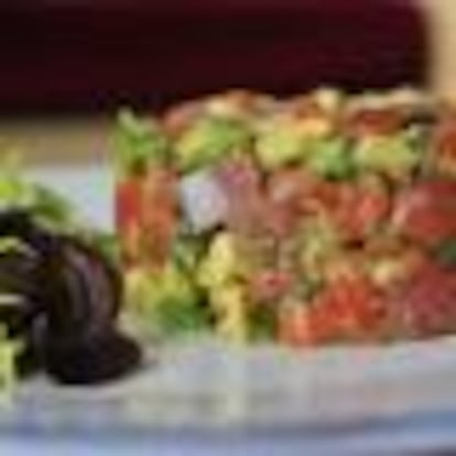 Para este tartar se utiliza salmón fresco y ahumado, y se mezclan con aguacate, que está de temporada. Además, todo ello se acompaña con un poco de salsa Perrins y tabasco.
