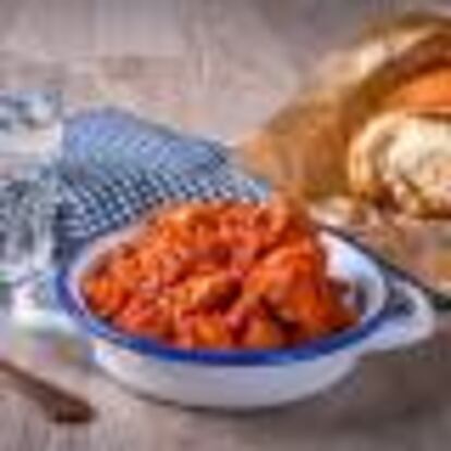 Este estofado de carne utiliza cabecero de lomo de cerdo cortado a dados. La única complejidad del plato está en encontrar un buen tomate frito industrial (a no se que quieras hacerlo casero, claro).
