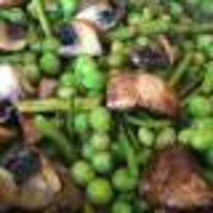 SARTÉN DE GUISANTES, TRIGUEROS Y CHAMPIÑONES
