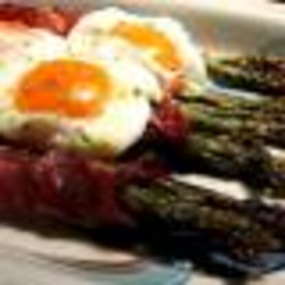 ESPÁRRAGOS TRIGUEROS CON JAMÓN Y HUEVO ESCALFADO
