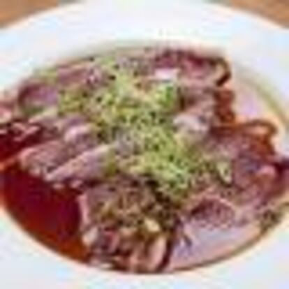 A medio camino entre un rosbif y un tataki, esta presa semicruda con salsa japonesa puede servirte como aperitivo para compartir o como plato de pleno derecho, si te apetece ponerte como el Quico.