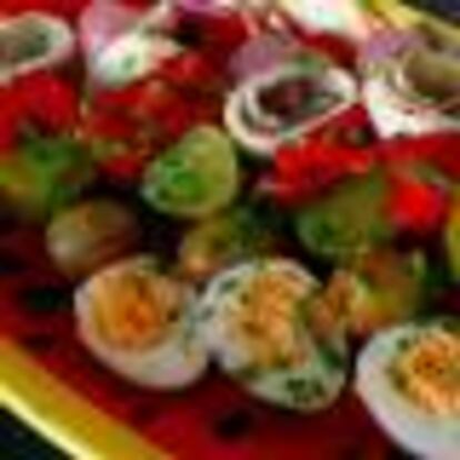 BANDERILLA DE BOQUERÓN, PIMIENTO Y HUEVO DE CODORNIZ