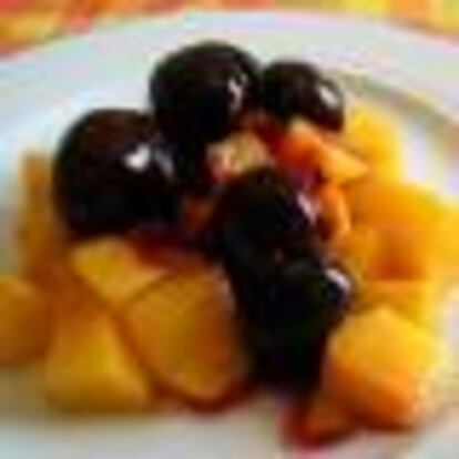 MACEDONIA DE MELÓN CON MORAS Y REQUESÓN