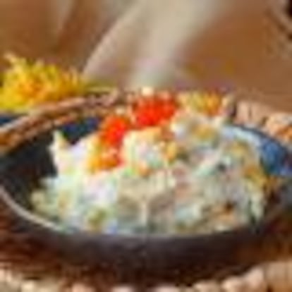 Con patatas paja de churrería, una buena mahonesa casera y un poco de merluza cocinada al vapor con un toque de fino puedes preparar una ensaladilla brutal en cuestión de minutos.