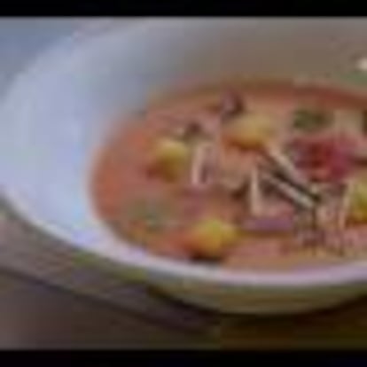 SOPA FRÍA DE TOMATE Y MASCARPONE CON PESTO