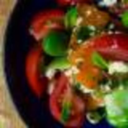 ENSALADA DE TOMATE, ALBARICOQUE, FETA Y VINAGRETA DE MENTA