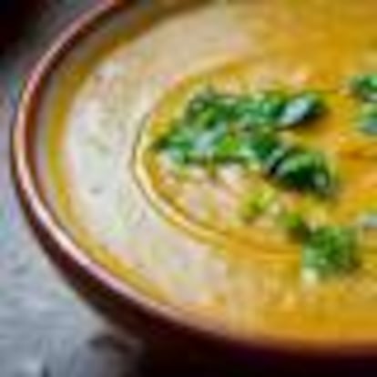 Una crema normal y corriente, con ligeros toques orientales: leche de coco en vez de nata, un poco de chile, jengibre fresco, comino y lima.