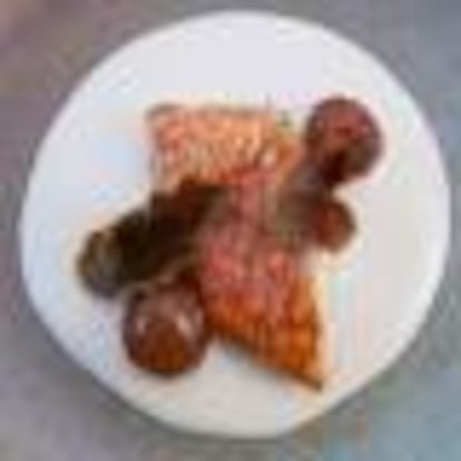Dos productos de temporada se unen para crear un plato de otoño que se sale de lo habitual. Confitar el salmonete en un aceite que no llegue a burbujear es básico para conseguir la textura perfecta.