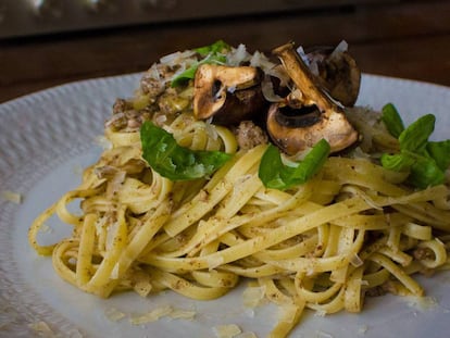 Una sartén, unos champiñones, un golpe de batidora y poco más es lo que necesitarás para hacer este recetón. De regalo, un truco para conseguir una salsa cremosa y bien integrada con la pasta.