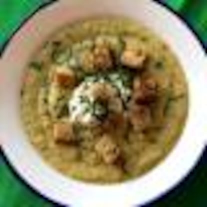La legumbre más rápida de cocinar y una buena cantidad de verdura de temporada son la base de una crema que puede tomarse caliente, fría o a temperatura ambiente. El quark y los picatostes le ponen la guinda.