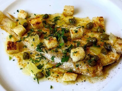 Un sencillísimo plato de pescado al horno, donde la bacaladilla puede ser sustituida por caballa, brótola, boga u otros, pero el aliño fresco de limón, aceite, ajo y perejil es innegociable.