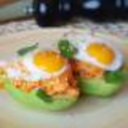 Rellenar un aguacate es una gran idea, y más si lo haces con un tartar de zanahoria muy bien aliñado coronado con huevo de codorniz frito. ¿Es un platazo de verano o no?