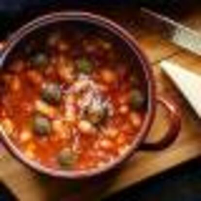 Un estofado en el que las aceitunas potencian el sabor de un buen sofrito y algunas especias, que puedes preparar desde cero cociendo tú la legumbre o acortar los tiempos usando una versión en conserva.