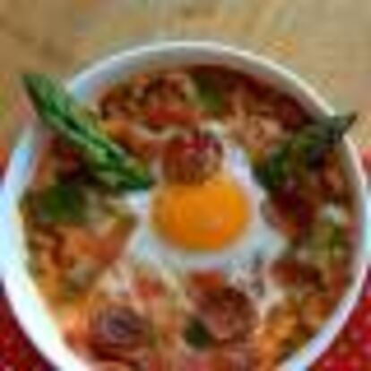¿Es una tapa? ¿Un desayuno? ¿Un avión? Esta receta sirve para un roto y para un descosido, porque tiene todo lo necesario para alegrarnos el día: verduras, huevos y una sospecha de embutido.