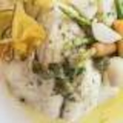 La técnica francesa llamada "meunière" emulsiona mantequilla con zumo de limón, y es perfecta para acompañar pescados como el besugo. Unas verduritas de temporada redondean el plato.