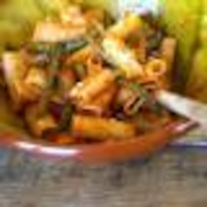 Esta carbonarización consigue una fantástica textura sedosa para la salsa gracias al huevo, a la vez que suaviza la acidez del tomate. Como éste último no está aún en plena temporada, recomiendo usar tomate embotado, a no ser que encontremos ejemplares suficientemente maduros y sabrosos.