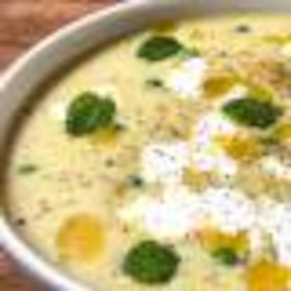 Unos buenos guisantes congelados serán la base para esta reconfortante crema, cuyo sabor se intensifica gracias al puerro previamente dorado. Un aceite de menta fresca y un poco de queso cremoso rematan la jugada.