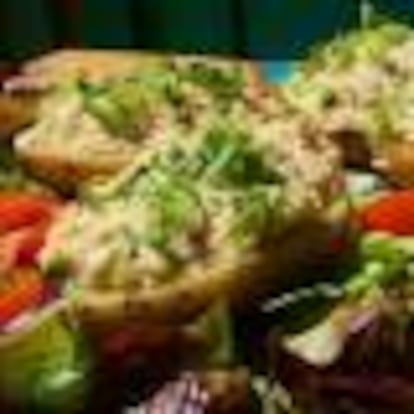 Un plato de aprovechamiento que juega con las sobras más habituales cuando asamos un pollo en casa: la pechuga y las patatas. Unos encurtidos y un poco de salsa rematan la jugada en este delicioso y adaptable plato.