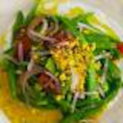 Las judías verdes no solo pueden tomarse calientes. En ensalada y cocinadas al punto dan un toque crujiente y fresco a esta receta, que se viene arriba gracias al aliño de mostaza casera de manzana.