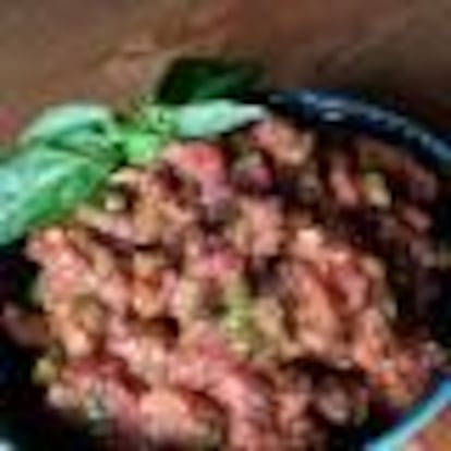 Mandamos el steak tartar de viaje a Italia aliñándolo con aceitunas, tomate deshidratado, albahaca, limón y aceite. Un poco de pan y un cuchillo afilado es todo lo que necesitas para disfrutar de esta receta.