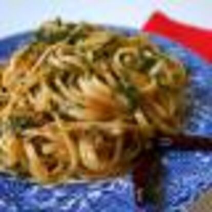 Tiene tanta enjundia como un arroz seco, pero es mucho más fácil de preparar: el único secreto para que esta fideuá salga bien es que el sofrito esté bien seco y el caldo de pescado, muy sabroso.