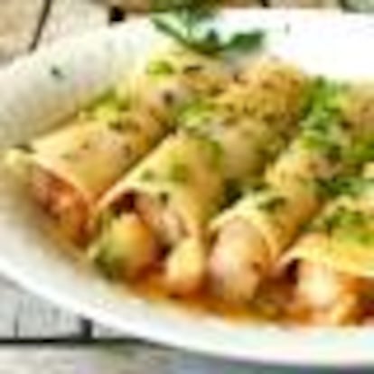 Un plato fresco que puedes preparar con antelación. Canelones sin bechamel aptos para intolerantes a los lácteos: esta receta de pescado y marisco es todo esto y más.