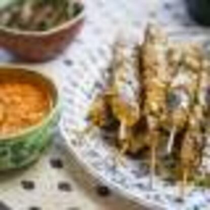 Pinchos de pollo con salsa de tomate y frutos secos