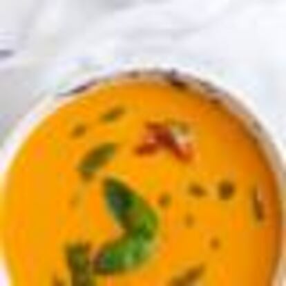 Ahora que estamos en verano empiezan a ganar presencia de nuevo las sopas frías. La que protagoniza la receta de hoy aprovecha que los tomates están en plena temporada y los une con un poco de pesto.