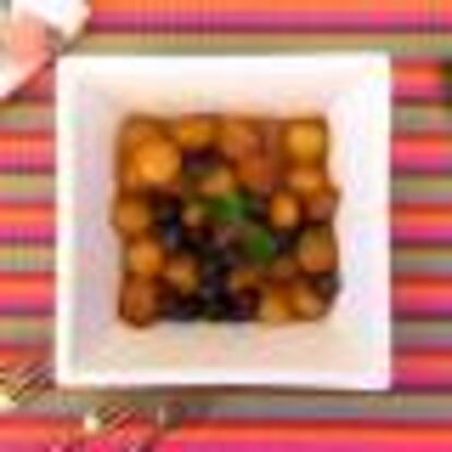 Este aperitivo es apto para los que no comen animales, con el punto dulce de la miel de caña, el crujiente de los frutos secos y la intensidad del queso azul. Solo faltará un poco de pan crujiente para acompañarlo.